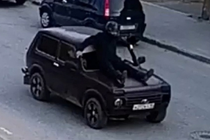 Инцидент попал на видео с камер видеонаблюдения. На записях видно, как машина на высокой скорости движется по нескольким улицам, при этом на капоте находится человек.