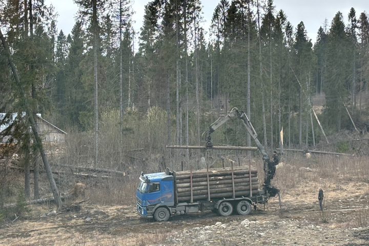 30 апреля в Петрозаводске рабочие на лесовозе осуществили вывоз срубленных деревьев с участка, расположенного на Старой Кукковке. Этот участок находится в районе улиц Ладожской и Котовского, поблизости от нового детского сада.