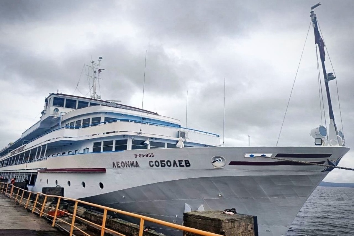 Как сообщили в аэропорту "Петрозаводск", 15 мая в город прибыл теплоход "Леонид Соболев".