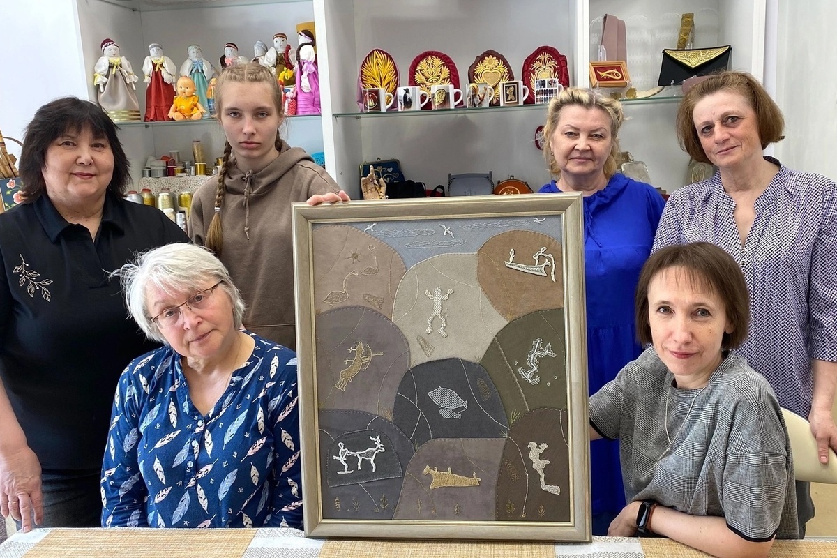 Восемь искусных вышивальщиц в течение многих месяцев кропотливо трудились над созданием удивительной картины "Петроглифы Беломорья". Наконец, работа завершена и презентована в клубе золотошвей.