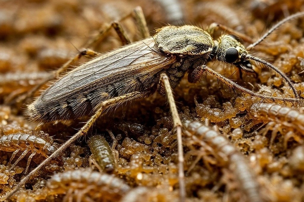 Берег Онего в районе Нобельского сквера в Петрозаводске покрыт сплошным ковром личинок комаров. Зрелище от которого мороз бежит по коже, по уверениям знатоков, опасности не представляет. Это личинки комаров-звонцов. Они не кровопийцы, питаются нектаром. А вот ими, в свою очередь, очень даже не прочь закусить рыбы и птицы.
