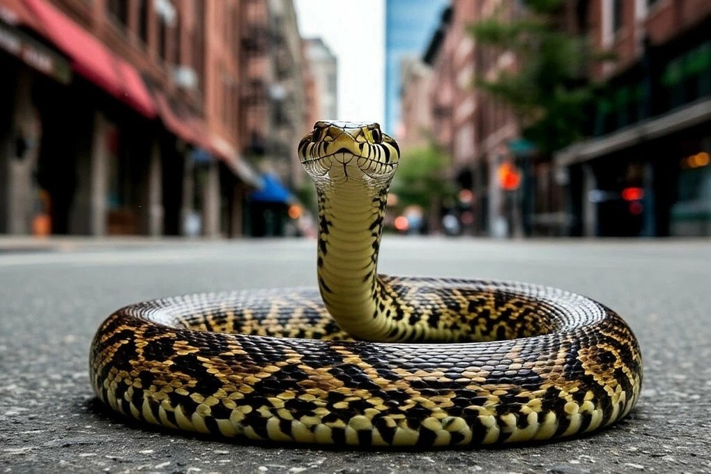 Змеи оккупируют городские улицы: практически в центре города у оживленного торгового центра прохожие сняли на видео змею.