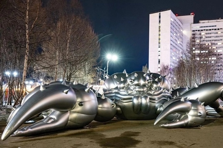 Весной мы писали об установленной в столице соседней Мурманской области необычной инсталляции: гигантском надувном серебристом ките, парящем над землей, и о таких же размеров и цвета крабе. Представители арктической фауны появились на мурманских улицах неслучайно, а в преддверии Международного Арктического форума.