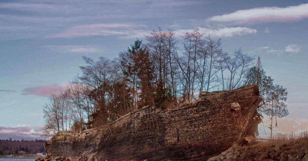 Подобная диковинка имеется и на Аляске - судно Ла Мерсед 1917-ого года тоже весьма эффектно заросло деревьями и кустарниками и сегодня выполняет функцию волнореза, защищающего пристань.