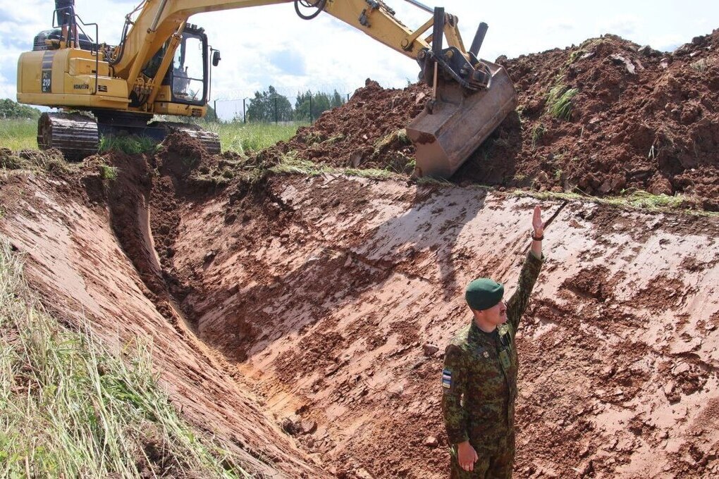 Эстонцы начали копать противотанковый ров на границе с Россией. Оператора экскаватора охраняют пограничники с автоматами, сообщают местные СМИ.
