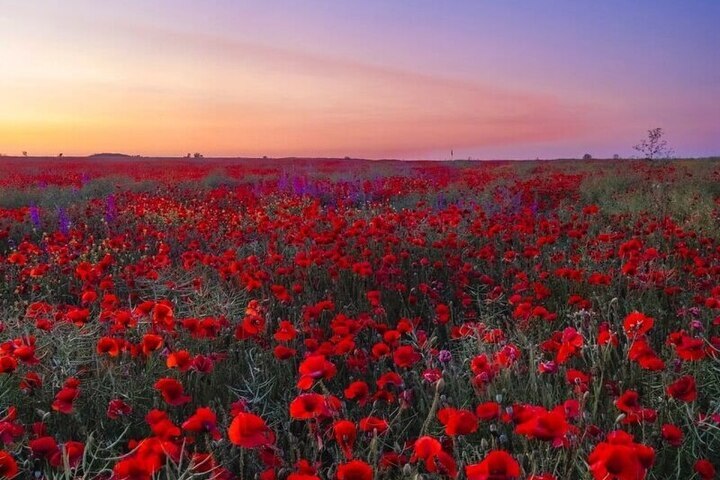 Неподалеку от поселка Кучугуры в Краснодарском крае каждый год поля окрашиваются в алый. Здесь расцветают маки, и не просто редкие вкрапления то там, то сям: весь простор от горизонта до горизонта превращается в настоящее полыхающее море.