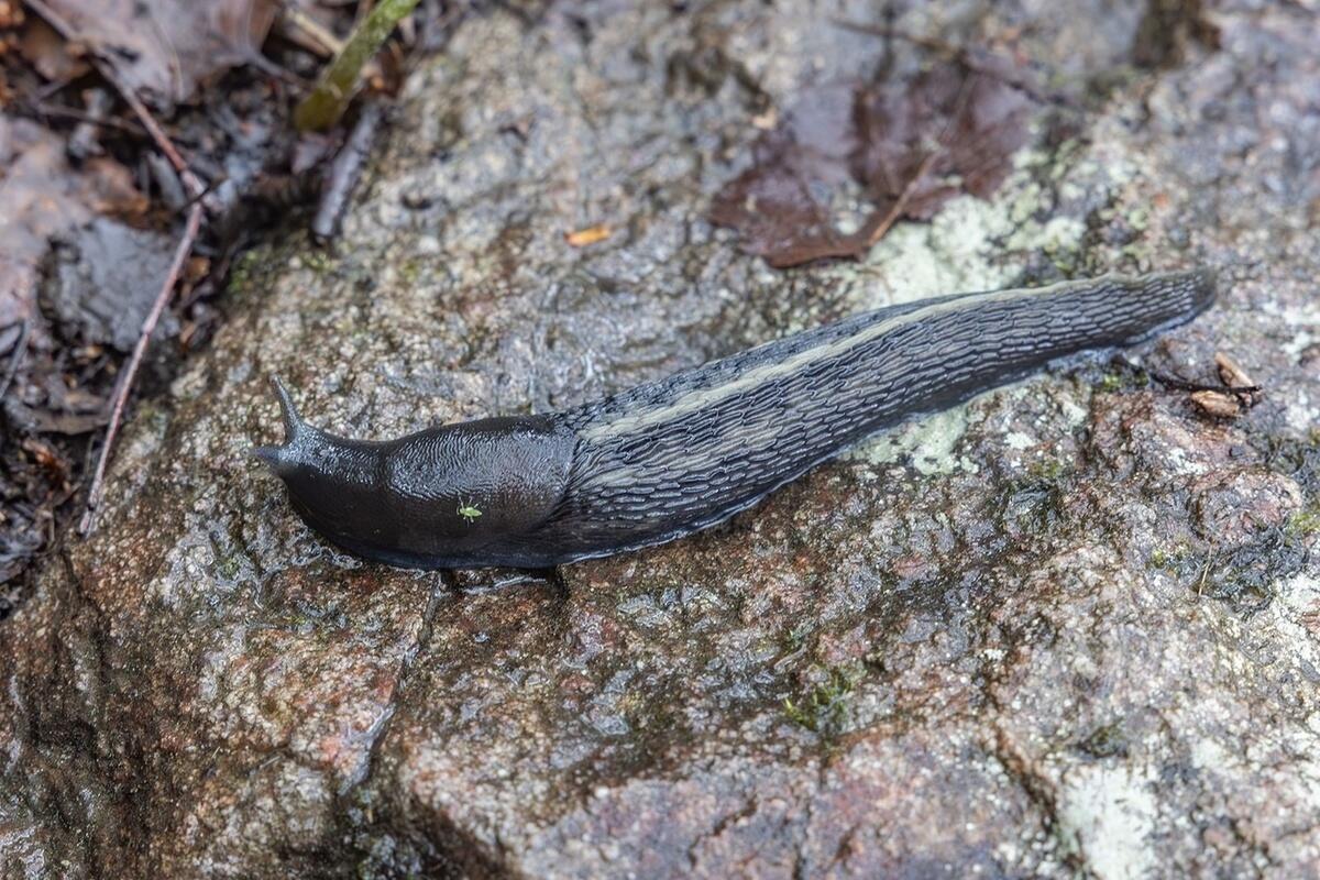 Крайне редкое животное, которое мы встретили, вероятно всего - Limax Сinereoniger или по-русски - слизень сизо-черный. Его нет во многих Красных книгах только потому, что встречи с ним редки почти как со снежным человеком.