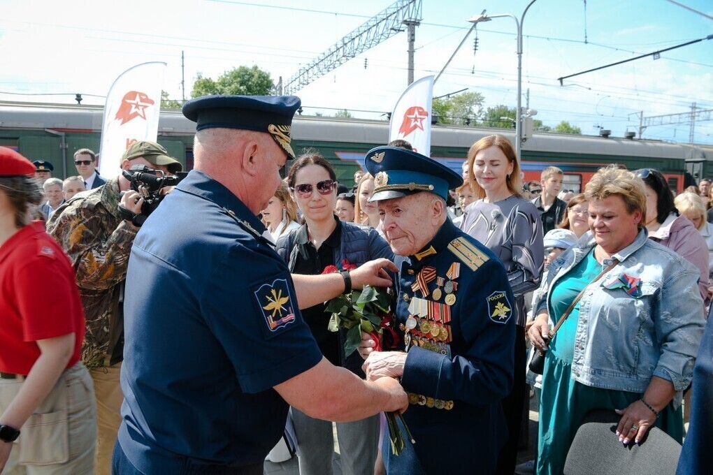На железнодорожном вокзале агитационно – патриотический состав, прибывший в Петрозаводск в рамках акции «Единство в памяти. Сила в подвиге!», встречали военнослужащие и сотрудники органов госбезопасности в войсках, представители общественных молодежных организаций, участники СВО, юнармейцы, жители и гости Карелии. Здесь состоялся торжественный митинг.