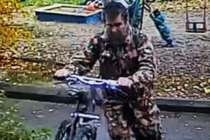 На записях видеонаблюдения запечатлен подозреваемый, который скрытно покинул место преступления на украденном велосипеде с игровой площадки города.