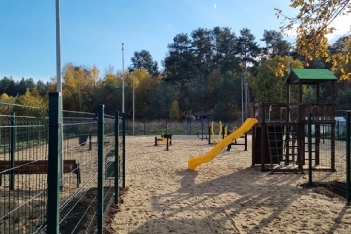 На территории разместили детскую горку, волейбольную площадку и уличные тренажеры для физических упражнений.