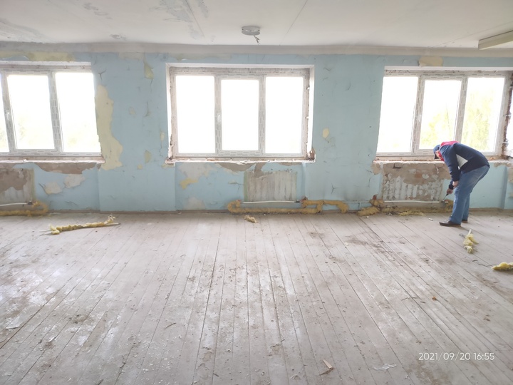 «Когда мне впервые показали мое будущее помещение, оно было полностью завалено каким-то строительным мусором, - вспоминает Людмила Драгунова. - Помещения были совершенно разрушены, как в давно заброшенном здании. Дверные проёмы разломаны, плитка пола разбита, провода вырваны, перегородки просто лежали, гипс испорчен... Кем были сняты чугунные радиаторы на других этажах, сверху и снизу нашего помещения, неизвестно, наверное, просто сдали в металлолом».