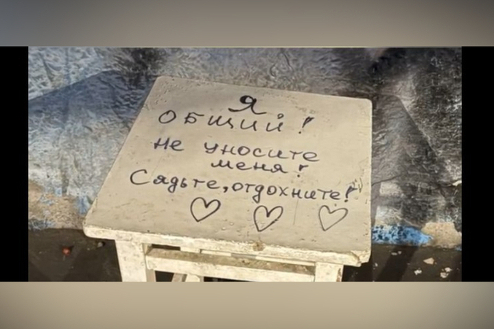 В Петрозаводске горожан призывают бережно относиться к единственному табурету на остановке общественного транспорта, подчёркивая его общественное предназначение.