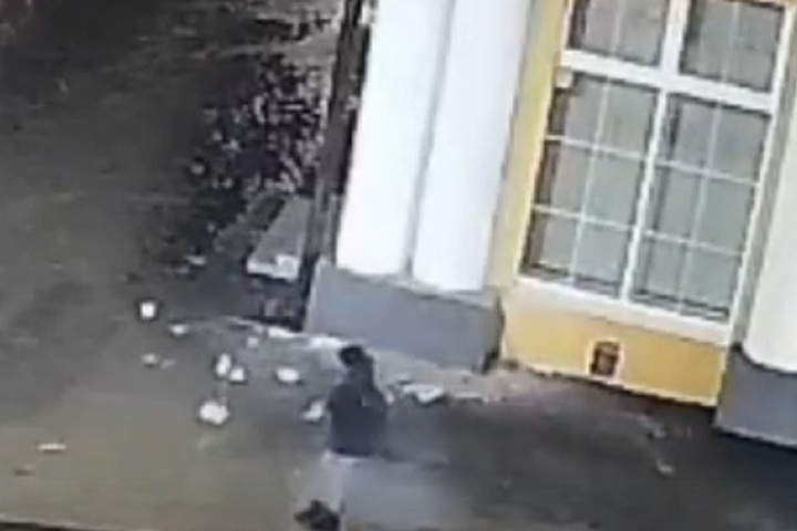 В социальной сети «Сегежские Будни | Сегежа | Карелия» опубликовано видео, на котором видно, как со здания, расположенного на пересечении улиц Советская и Мира в Сегеже, падает часть колонны.