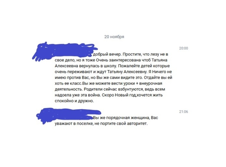 Одна из ушедших педагогов, бывший классный руководитель, вдруг захотела вернуться. Причем не перед началом учебного года, когда идет распределение нагрузки между учителями, а в конце осени. Теперь ее часы распределены между другими людьми, и соответствующим образом тарифицированы: на основании этого работнику начисляется заработная плата. Изменить порядок до конца учебного года уже никто не может, если только сам учитель не откажется от части своей нагрузки в пользу коллеги, чего в нашем случае не произошло. И тогда началось давление.