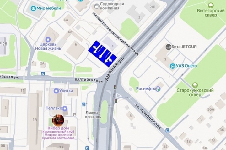 Теперь с крайней правой полосы на перекрёстке, ведущей к улице Ровио, разрешено будет не только поворот направо, как было ранее, но и движение прямо.