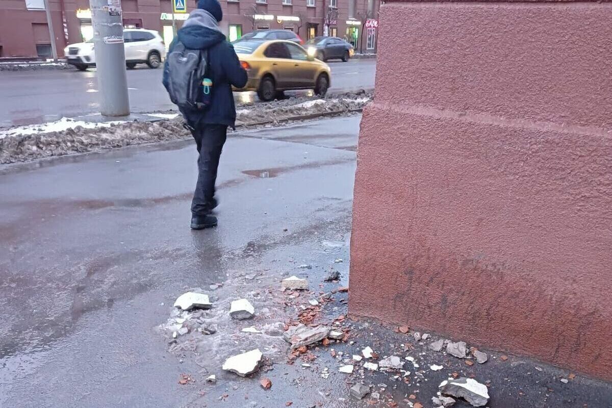 Исторический объект, расположенный на углу площади Гагарина и проспекта Ленина, снова подвержен осыпанию. Коварные камни падают на тротуар, по которому проходят пешеходы. Свежие фотографии, сделанные нашими читателями из «Столицы на Онего», попали в редакцию. Напомним, речь идет о здании по адресу пр. Ленина 37, штукатурка которого начинает разрушаться регулярно с 2023 года.