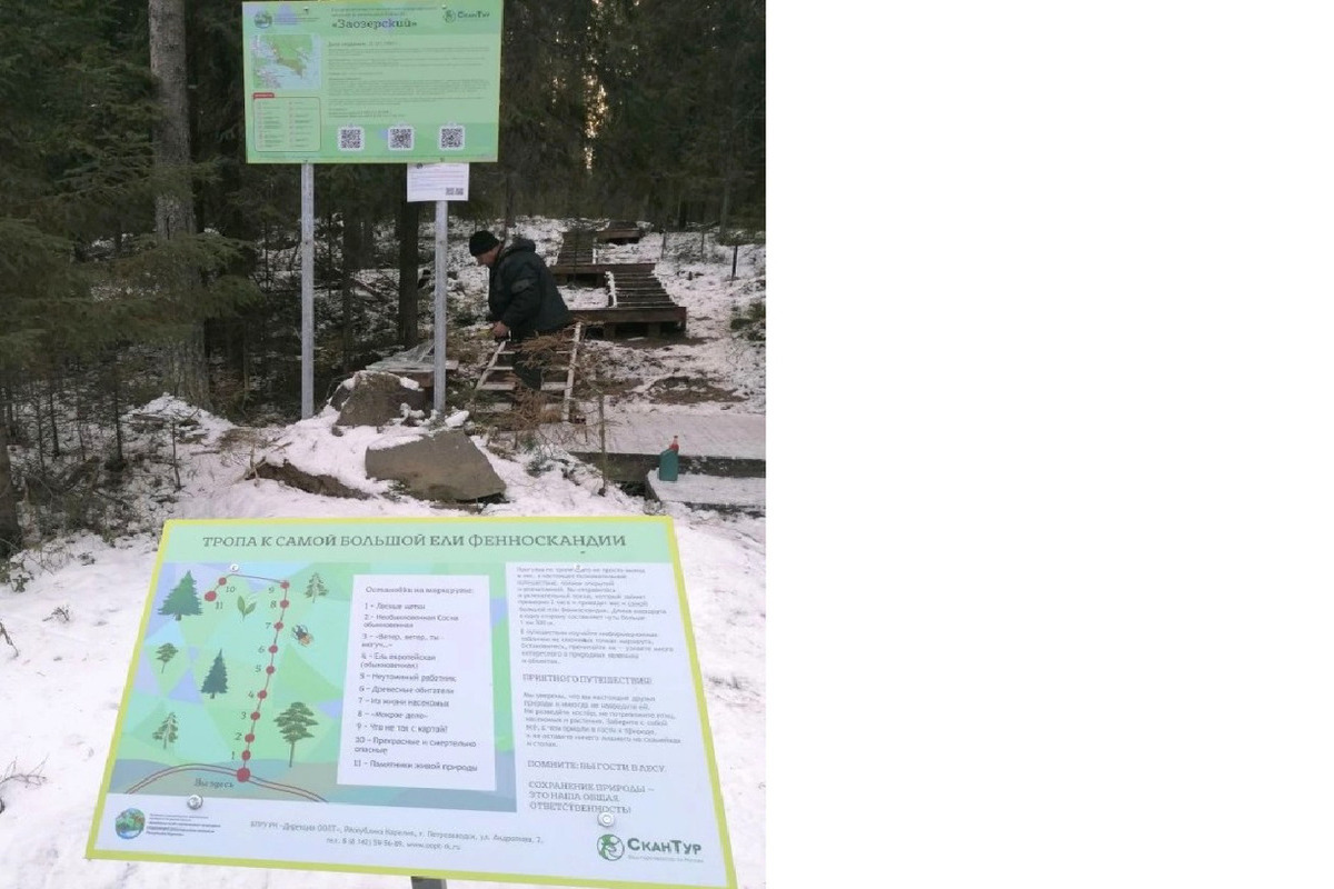 В карельском заказнике «Заозерский» полным ходом идет обновление пешеходного маршрута к уникальному дереву — самой большой ели Фенноскандии, которая имеет статус памятника живой природы. Возраст этой ели превышает 180 лет, ее высота достигает 40 метров, а диаметр ствола — около 1,5 метров.