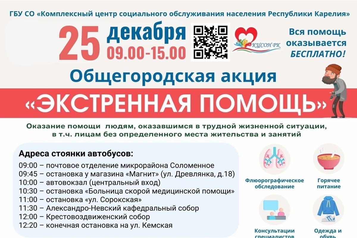 Сегодня, 25 декабря, в Петрозаводске проходит общегородская акция «ЭКСТРЕННАЯ ПОМОЩЬ».