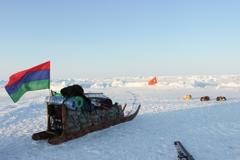 Во время экспедиции на собачьих упряжках известных путешественников Федора Конюхова и Виктора Симонова из Карелии через Северный Полюс в Гренландию, ее участники сделали памятное фото в том числе и у этого знака. Однако мысли забрать на сувениры даже в голову не приходило.