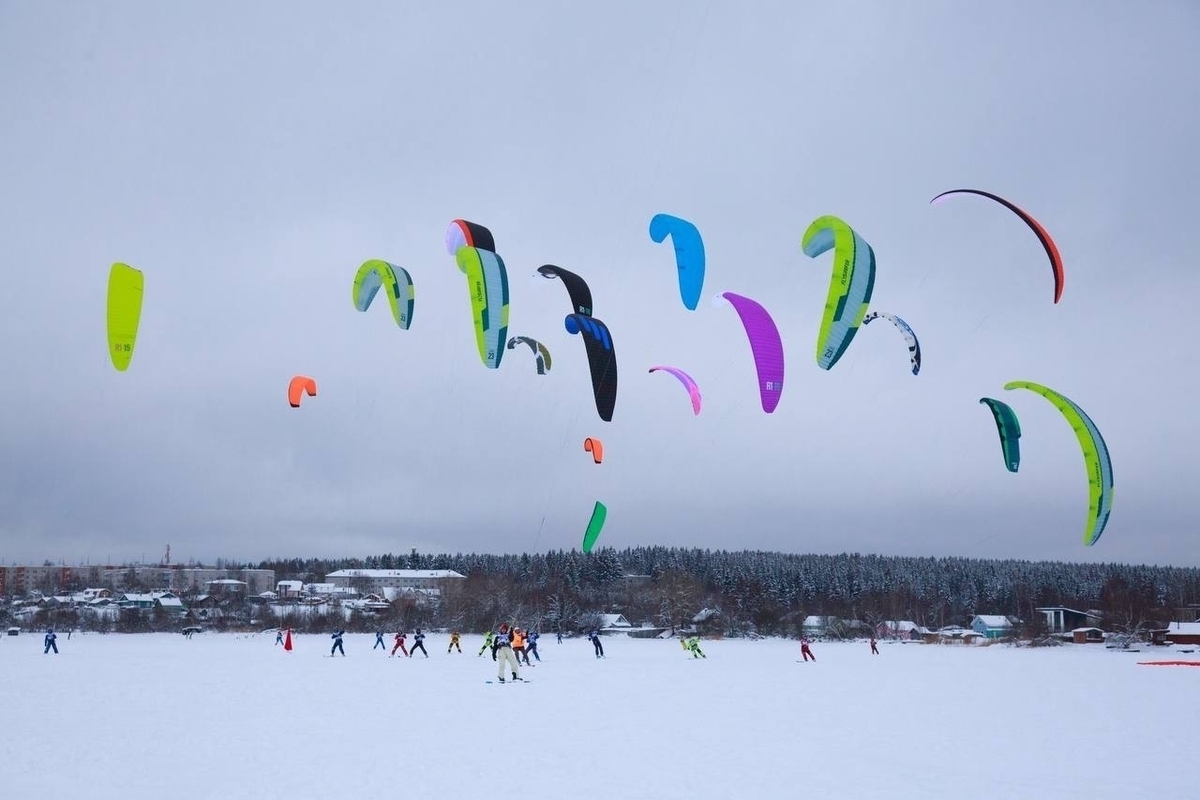 С первых заездов — плотная борьба, ветер и настоящая зимняя динамика. Спортсмены уверенно работали с кайтом, проходили дистанцию на пределе концентрации и скорости, а Логмозеро стало идеальной площадкой для зрелищных стартов.