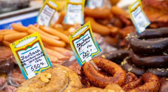 На ярмарке представлен широкий выбор овощей, фруктов, мяса, рыбы, сладостей и даже норковых шуб. Продавцы доброжелательные, предлагают попробовать товары, чтобы определиться с выбором.