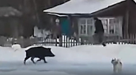 Кабан забрел в поселок Кетроваара Лахденпохского района. Видео с «визитом» животного в группе «Лахдепохья – навсегда!» выложили местные жители. Судя по видеозаписи, животное чувствовало себе в населенном пункте довольно вольготно. Вокруг заливались лаем собаки, комментировали происходящее люди, но кабана это не беспокоило – он пришел, чтобы поесть.