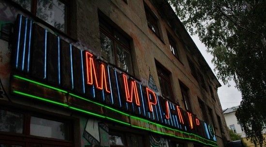Вечером 12 августа в Петрозаводске загорелась вывеска «Миру – мир». Ее несколько месяцев восстанавливали создатели «Музея недавнего», в котором нашлось место фотографиям цехов ОТЗ, воспоминаниям рабочим и старым надписям, украшавшим Петрозаводск в недавнем прошлом.